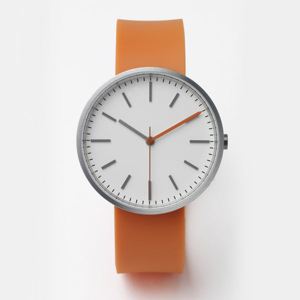 Unmistakably Uniform Wares, the 104 Series is the latest update to the 100 collection. This new range represents a subtle yet comprehensive refinement of the watch which is the cornerstone from which the company's timepiece collections have grown. The 104 Series features a new, two-part case construction, which houses a Swiss-made, 5-jewel Ronda movement. This brings the 104 Series in line with the rest of the Uniform Wares collections, all of which are powered by Swiss-manufactured movements. Significant updates also include a refined hand design and a return to colour, with carefully considered palette variations in the lacquered dial components, indexing and textured contrast on the exterior case surfaces.