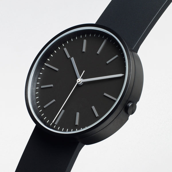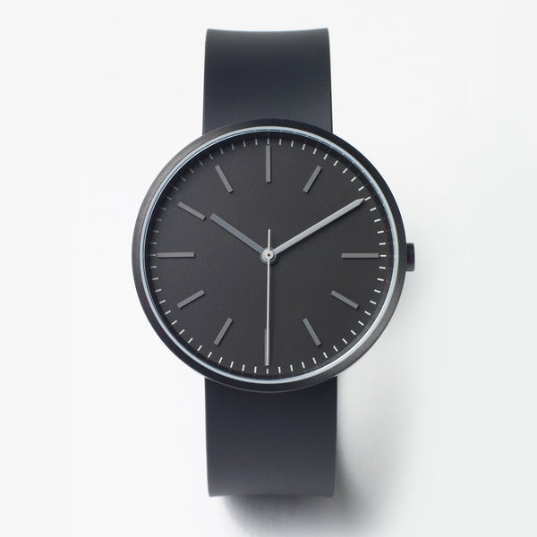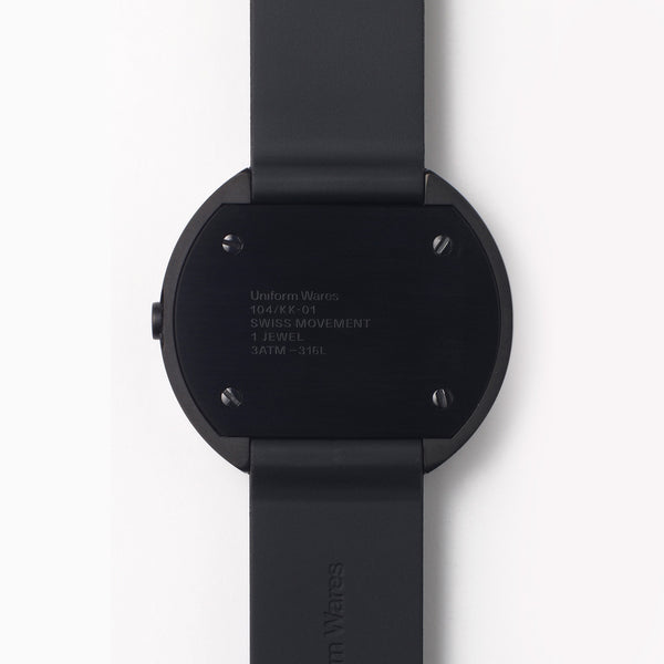 104/KK-01 Matt bead-blasted PVD black case and black rubber strap.