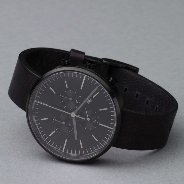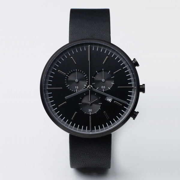 In the world of horology nothing is simpler in operation or interpretation than a mechanical stopwatch and the 302 Series has been designed to echo this utilitarian beauty. This timepiece emphasises the elegantly balanced symmetry of the Swiss-made, 23-jewel movement at its heart. The watch delivers 7 indications: three hands for standard time in hours, minutes and seconds, three hands for the split chronograph functions, plus the date aperture window at 4 o'clock. Despite the density of information that the dial provides, this chronograph watch remains true to the Uniform Wares signature of legible, minimal detailing.