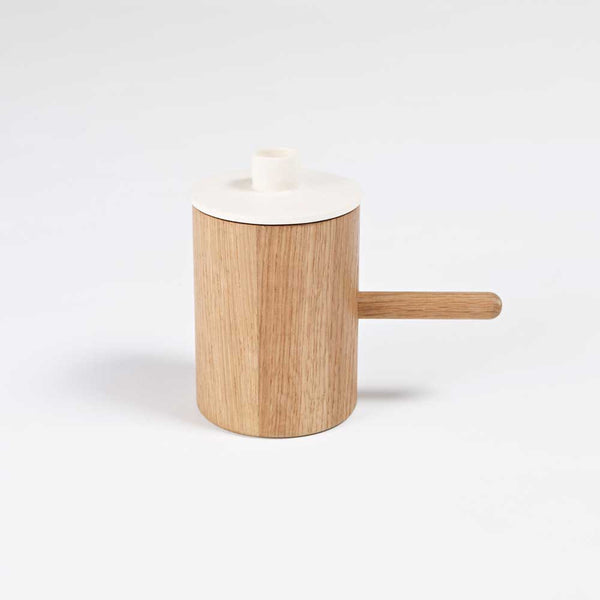 Each member of this perfectly functional and charming family of candlesticks consists of a ceramic lid on a turned oak base. Inside is a concealed box, perfect for hiding away or keeping belongings safe. Another beautiful accessory from the British furniture makers Another Country.Available in three sizes: small, medium or large