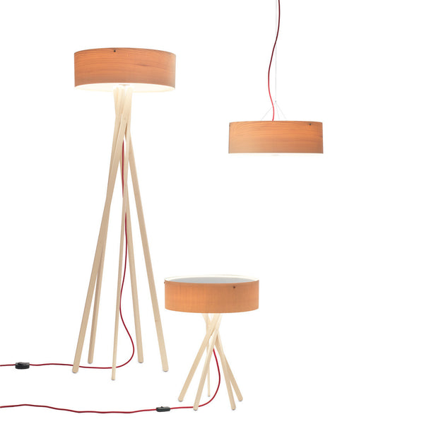 The native wood of the maple is especially oiled to endow it with unique characteristics of high resilience, stability and exceptional texture. The wood makes the light of the energy-saving fluorescent lamp glisten and transforms it into a warm yet powerful light, while bestowing a unique atmosphere to the room.