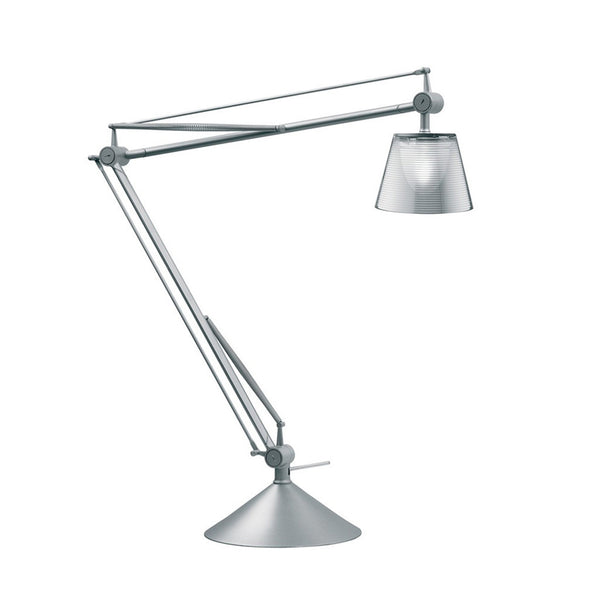 Polycarbonate, glass and aluminum. Gray painted die-cast Zamak base.