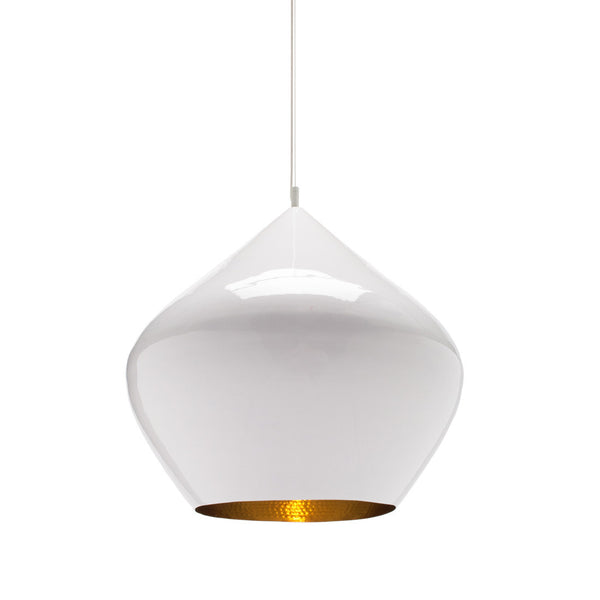 Inspired by the sculptural simplicity of brass cooking pots and traditional water vessels on the subcontinent · This pendant light is spun and hand¯beaten by renowned skilled craftsmen of Moradabad in Northern India.