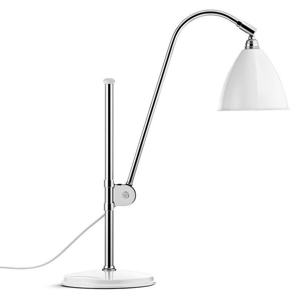 Shade, base and cord: Black, off white or matt white. Tube and arm: Chromed steel