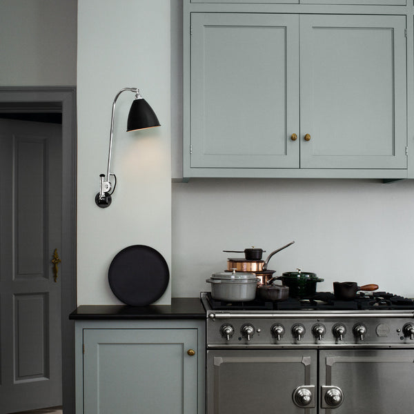 Shade, base and cord: Black, off white or matt white. Tube and arm: Chromed steel
