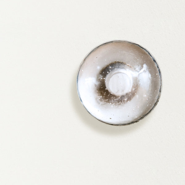 This low voltage wall/ceiling mounted light is a cast glass half sphere with a frosted cylindrical void. The lamp interacts with the imperfections of the glass to create a rich halo of light. Visually quite subtle, the 14s gains tremendous strength when clustered in random formations along horizontal and vertical applications.
