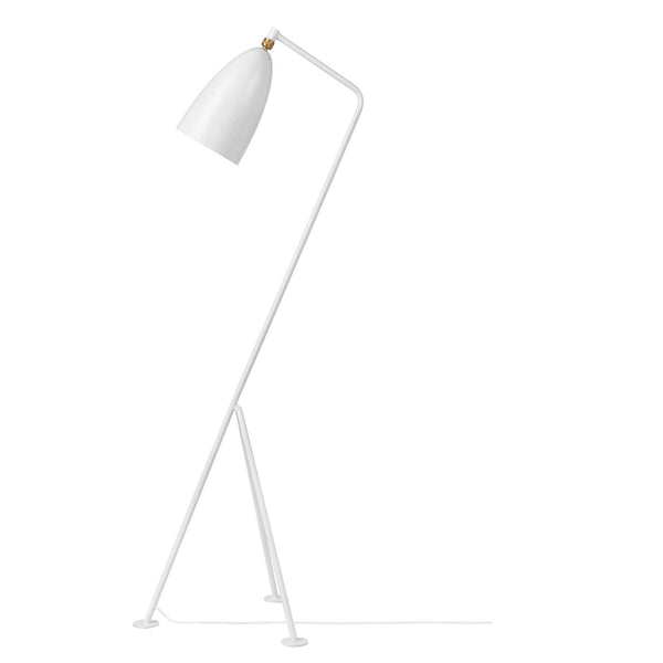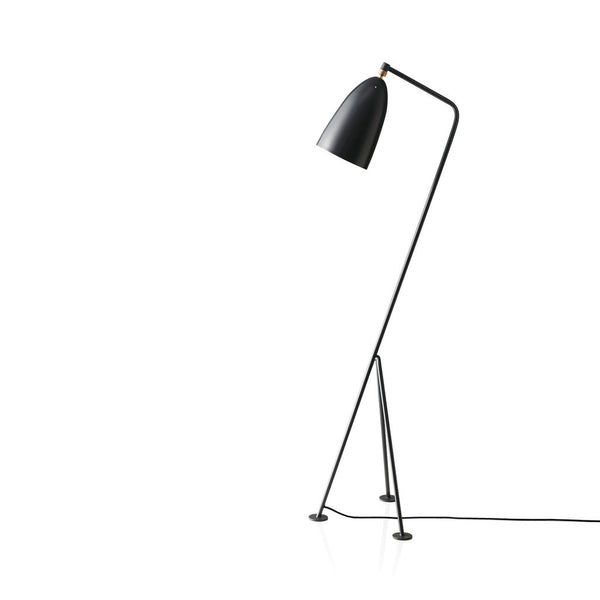 The iconic Grashoppa lamp was first produced in 1947. The tubular steel tripod stand is tilted backward and the elongated aluminium conical shade is ball-jointed onto the arm. This way the light can be directional, yet the glare is minimal. Both stand and shade are powder-coated.
