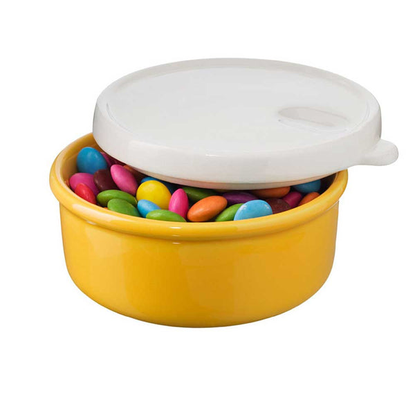 A range of ceramic products based on classic Tupperware. Available in yellow, petrol blue, orange and green.