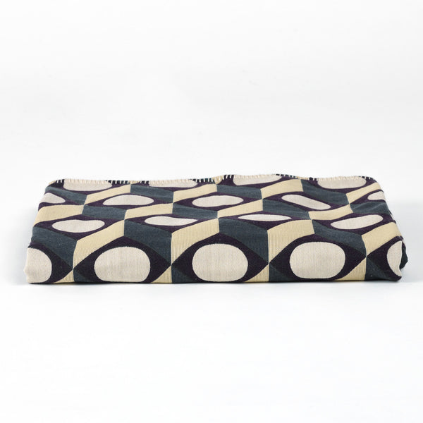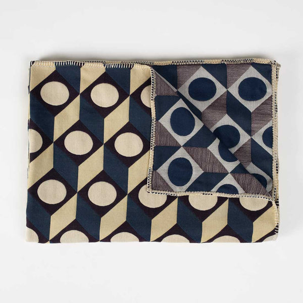 100% hand-dyed wool. Jacquard woven large cubes pattern