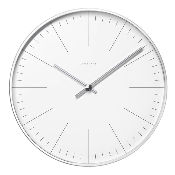 A range of classic wall clocks by Max Bill. The range includes a standard quartz or radio controlled movement (which automatically sets to the world clock and does not require adjustment). There are 22cm, and 30cm versions with either hour markers only or with numerals and markers.