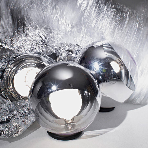 A highly reflective shade inspired by the space helmet. The Mirror Ball is created by exploding a thin layer of pure metal onto the internal surface of a polycarbonate globe. This has become one of the most iconic products in the collection.