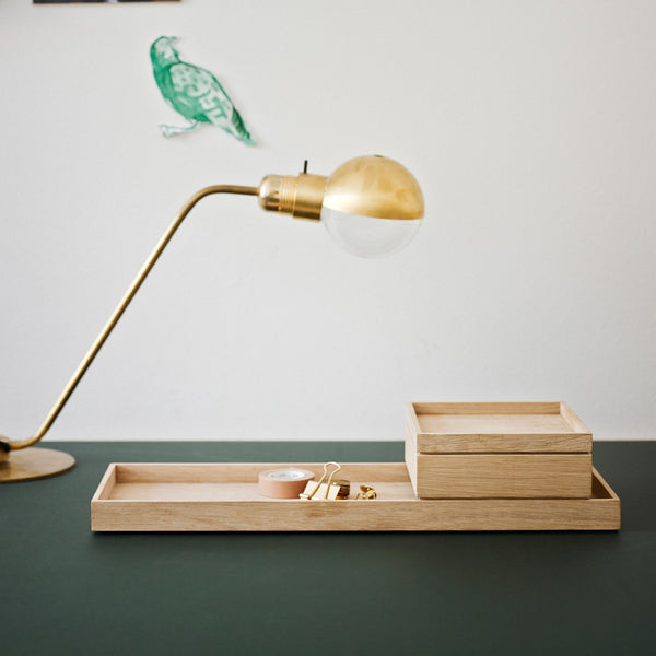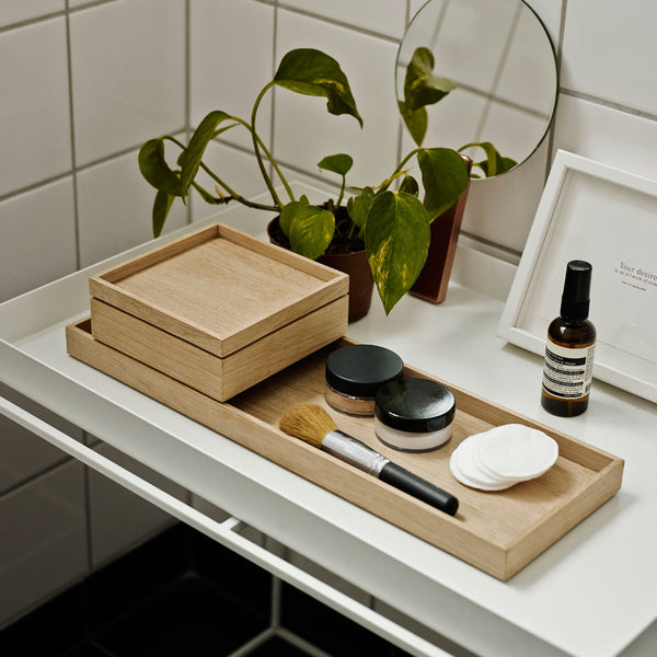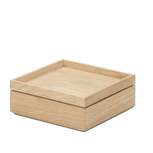 A beautifully crafted wooden oak box with lid. The box can be combined with the Nomad tray provide a neat system for containing small things.