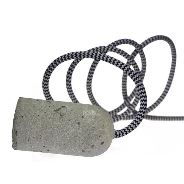 A simple rough concrete bulb holder from NUD. Comes with a 3 metre textile cord. E27 screw fitting - bulb sold separately. Available with a black+white, copper or grey cord.