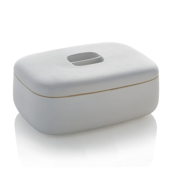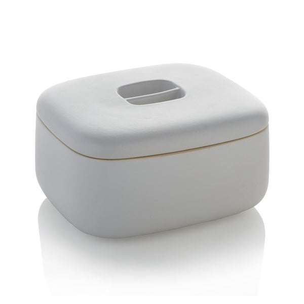 Container in stoneware with lid, belonging to the Table set Ovale designed by Ronan and Erwan Bouroullec. A simple, functional yet tactile container that can be used for serving or storing food or simply organising your favourite objects.