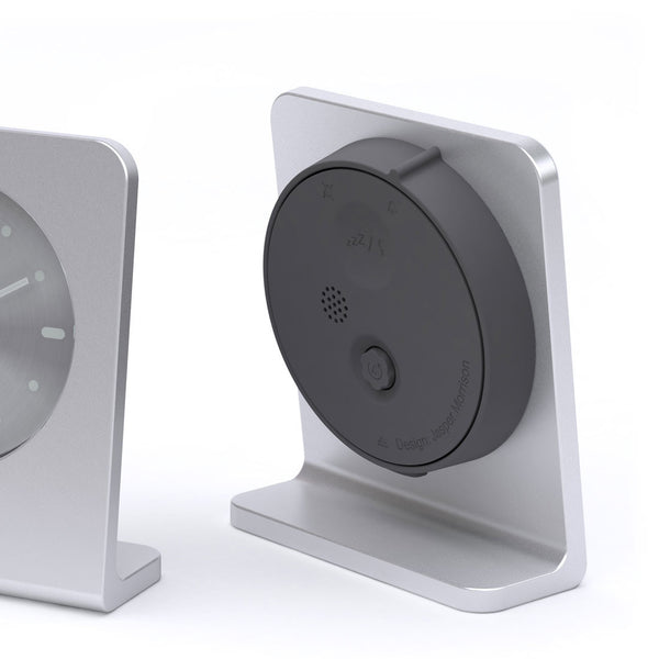 British designer Jasper Morrison presents a modern spin on the traditional analog alarm clock. The Punkt AC 01 is both striking in its simplicity and aesthetics with four different functions that are intuitive to use. A clever manual switch activates the alarm and the status will be clearly displayed on the dial. A gentle squeeze of the clock illuminates the face with a single LED light. Solid aluminum casing and scratch-resistant glass. Movement - quartz.