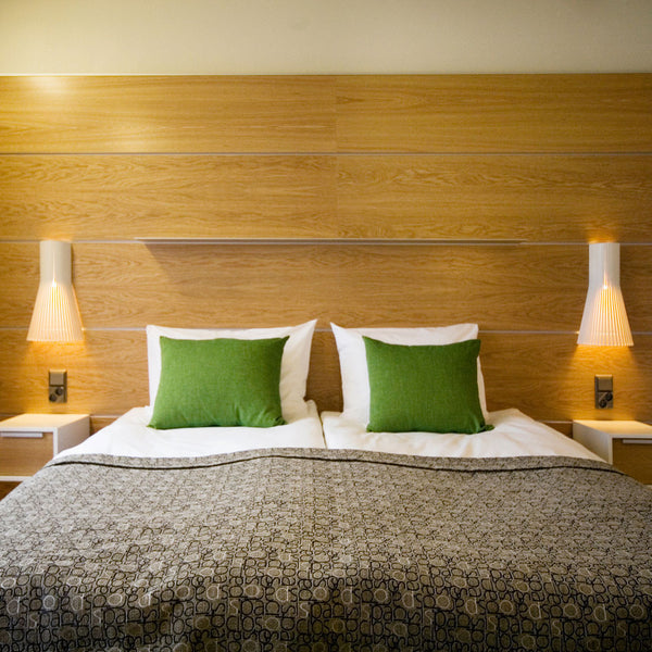 The Secto Design collection is designed by architect Seppo Koho. Handmade by highly skilled craftsmen in Finland in Finnish birch. The shades are made of laminated birch slats connected by rings of aircraft grade plywood.