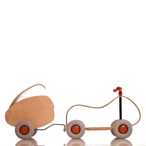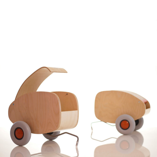 Sibis Lorette is a trailer designed to attach to the ride on Sibis Flix. With heavy duty silent wheels the trailer makes the perfect hideaway so that little ones can busy themselves transporting their toys around the house.