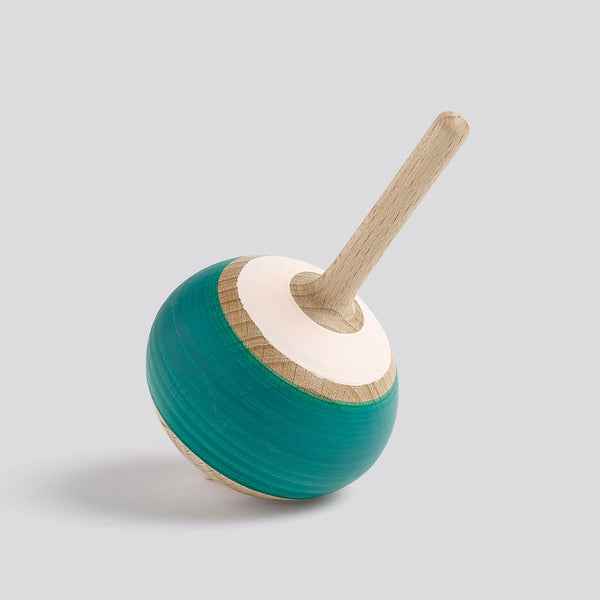 A king-size spinning top made of solid beechwood. Available in a variety of different versions, all sporting bright colour combinations at the top and bottom to create spellbinding patterns when the top spins. Decorated by hand.