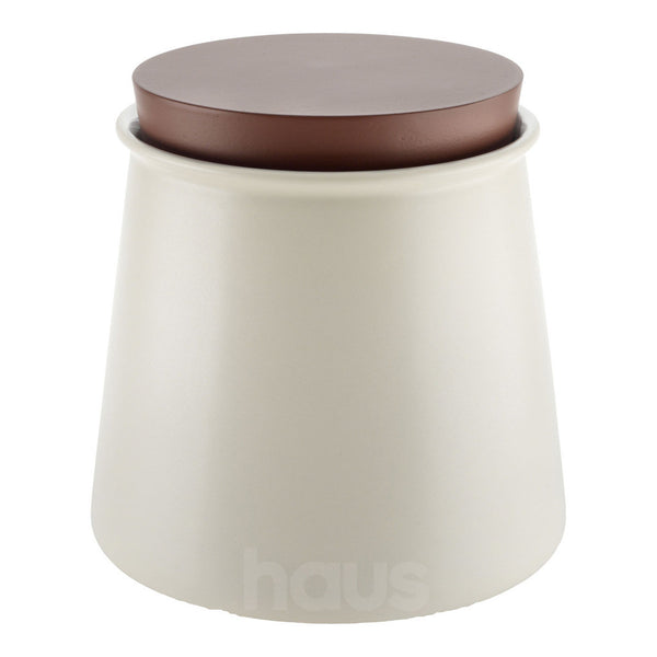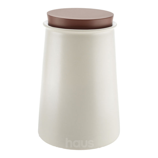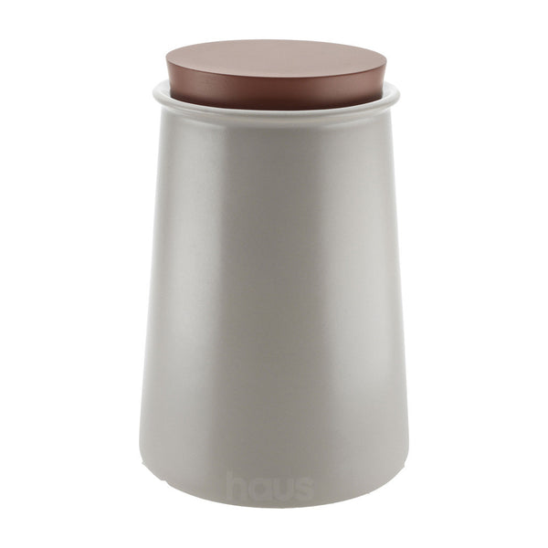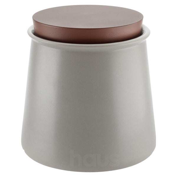 Vessel in stoneware with lid in silicone. Available in two colours and two sizes.