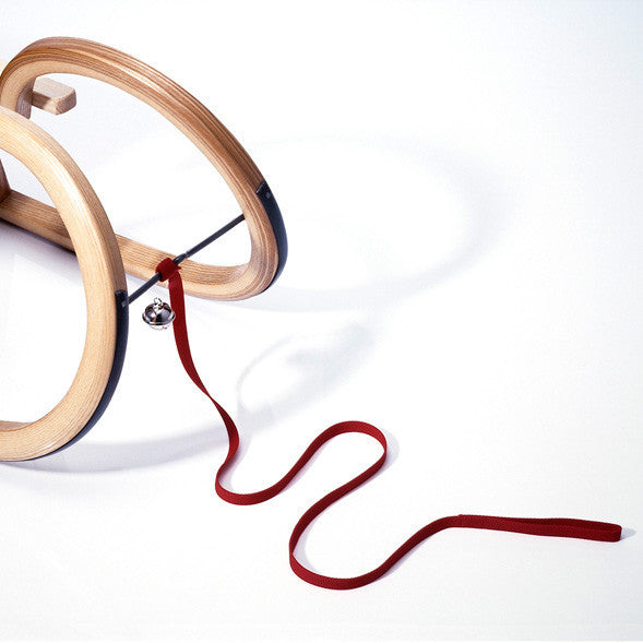 This beautiful sled has the classic horn shaped front made of steam bent ash wood. Seat made of webbed fabric. Delightful pull handle with bell.