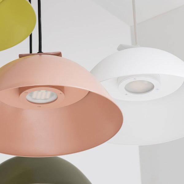 Dimmable pendant lamp. Warm white LED with glare-protecting shade and diffuser.