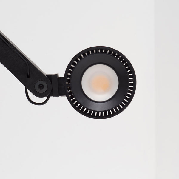 Dimmable table lamp with timer. Manufactured in fibreglass reinforced recyclable biopolyamide. Warm white multichip LED light source with a reflector and diffuser lens, in combination with a glare protection system. Adjustable shade providing universally directional light.